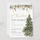 Boho Rustic Christmas Tree Twinkle Lights Winter Holiday Baby Shower Invitation. Bohemian Style Drop Botanicals Invitation with Elegant and Simple boho Rustic Tree and Pine Botanicals in Hand-printed Watercolor. The green colour botanical and light pattern background is gorgeous for boho baby showers and Christmas baby showers. Simple, printable invitation for holiday and winter baby showers.