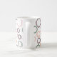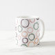 This mug has a Boho design of overlapping circles on retro pink, purple, moss green, and caramel orange.