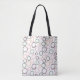 This tote bag has a Boho design of overlapping circles on retro pink, purple, moss green, and caramel orange.