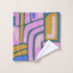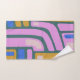 This stylish bath towel set features a modern abstract shapes pattern in a vibrant playful colour palette of mustard yellow, green, blue, and pink. Great gift idea!