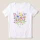 This stylish, white T-shirt features a bouquet of pretty boho wildflowers, in shades of blue, purple, pink, and yellow with lovely green leaves. Add your name or monogram.