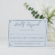 A simple and elegant calligraphy wedding RSVP card. That has a cool blue background and marina blue hand drawn frame and info.