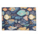 Immerse yourself in a colourful underwater world with this Boho Coral Reef Fish Pattern. Featuring a rich tapestry of intricately detailed tropical fish, delicate coral, and flowing aquatic elements, this seamless design bursts with vibrant blues, oranges, and golds, set against a deep navy background for a striking contrast.