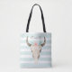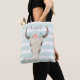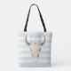 Trendy and chic personalised floral cow skull on a mint and white water colour stripes pattern.
