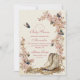 A charming western-inspired baby shower design featuring elegant cowgirl boots surrounded by blooming pink florals and fluttering butterflies. Perfect for rustic, country, and boho-themed celebrations that bring a touch of western charm and soft femininity.