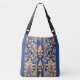 Gypsy Cowgirl Western Floral Damask all over print cross body tote bag in vibrant cobalt blue and lapis lazuli. Bring timeless elegance and feminine charm into your wardrobe with this lovely, intricate Western-inspired damask floral foliage design ideal for fanas of western fashion. Details reminiscent of tooled leather and vintage patterns make it a stunning addition to the modern cowgirl;s fashion accessory collection. This versatile Western stylebag blends traditional elegance with modern aesthetics, perfect for enhancing any outfit with a touch of old fashioned feminine charm.