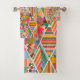 This towel set has a Boho design of diamonds with different patterns in then in a Boho colour palette.