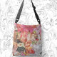 This boho cross body bag features an original floral collage including vintage ladies, teacups, and cats. The shades of pink and orange give off a feminine vibe and the bohemian artwork will make your style stand out.