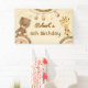 Cute boy boho watercolor Birthday line with bear and giraffe. Neutral colors in boho style. Simple and cute. Editable name, address and age.