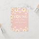 She's turning 3! Invite your guests with this beautiful daisy theme third birthday invitation. The groovy design features hand-drawn daisy flowers in a modern boho style, adding a touch of elegance to the invitation. The muted blush pink background provides a beautiful backdrop for the flowers, creating a soft and warm feeling. Click the "customise further" button if you wish to re-arrange and format the style and placement of the text.