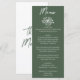 Boho Dark Moss Green Hand Drawn Floral Wedding Menu