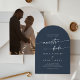 This boho dark navy blue photo arch Spanish wedding invitation is perfect for a minimalist wedding. The muted and moody neutral dark blue modern bohemian design features simple rustic calligraphy with a unique yet classic style.