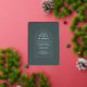 A unique design with multiple delicate arch lines surrounding your wedding invitation information in gold foil stamped, over a dark green background