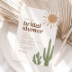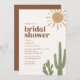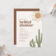 Invite friends and family to celebrate the bride to be with this boho bridal shower invitation, featuring cacti and watercolor sun in warm colours.