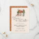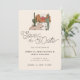 Custom boho desert wedding save the date invitation with a modern desert landscape illustration with a sunset and cactus, modern script font for Save the Date and fully customisable text template for the couple's names and the wedding information. Cute matching desert pattern on the back on a warm brown terracotta background.