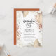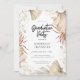 Bohemian Chic dried palm and floral frame, graduation party invitation. Back of card features solid desert rust orange colour.