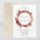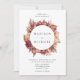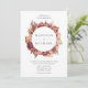 Elegant, unique floral wedding invitation featuring your names encircled by burgundy, purple, blush, and coral watercolor flowers and lush foliage in rich beige and brown earth tones. Personalise the floral invitations by adding details such as wedding date, time, venue, and reception information. The invite reverses to a light beige watercolor background.