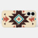 A Southwestern-inspired geometric emblem featuring bold diamond shapes, earthy red and brown tones, and vibrant turquoise accents. The distressed texture adds a handcrafted, vintage feel, giving this design a strong boho-tribal aesthetic.