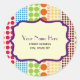 An address sticker featuring a background of rows of dots in various sizes and bohemian inspired shades of pink, purple, orange, blue, and green. Personalise with your name and address inside purple frame. Look for matching items at Jill's Paperie.