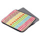 An electronics bag featuring rows of polka dots in various sizes and boho inspired shades of pink, blue, green, orange, yellow, and burgundy.