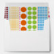 An envelope featuring a pattern of dots in various sizes and bohemian inspired colours on the inside. Look for matching stationery, address labels, and more at Jill's Paperie.