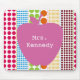 A gift for teachers featuring rows of polka dots in various sizes and boho inspired colours. Personalise the name on pink apple.