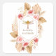Elegant pretty, boho style floral botanical product label stickers that say: "Handmade by", with the maker's name. elegant product labels, featuring a gold frame with pink cream florals and palmetto leaves.