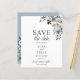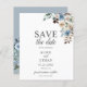 Boho dusty blue and neutral beige flowers with dried leaves.