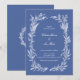 Set the tone for your romantic celebration with this stunning cornflower blue wedding invitation, featuring delicate hand-drawn white wildflower and botanical foliage arranged in a lush, organic wreath frame. Coordinate with matching RSVP cards, details cards, and thank you notes to create a cohesive wedding stationery suite that leaves a lasting impression on your guests. Ideal for couples seeking a blend of rustic elegance and vintage romance with a modern, customisable twist.