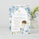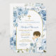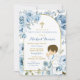 Boho Dusty Blue Floral Boy Praying First Communion Invitation