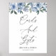 bohemian dusty blue floral wedding, Cards and Gifts sign. The text and colours can be edited.