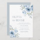 watercolor dusty blue floral wedding invitation. The text and colours can be edited.