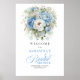 Boho Dusty Blue Flowers Bridal Shower Welcome Poster