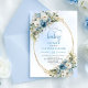 Boho Dusty Blue Flowers Gold Script Baby Shower Invitation