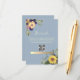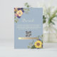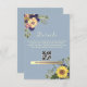 Elegant, rustic, boho, botanical, dusty blue wedding details card with QR code, website, watercolor flowers and sunflowers.