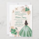 Boho Dusty Green Floral Mexican Girl Quinceañera Invitation