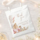 These bridal shower thank-you favour bags feature an elegant boho floral theme. This design incorporates pink/gold/brown pampas grass and flowers. Customise the text to create the perfect wedding shower thank you favour bag.