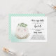 For the Mum-to-be of a little hatchling, choose this modern easter themed baby shower invitation. Decorated a with an adorable smiling egg illustration sitting in a nest with a eucalyptus wreath crown upon its head. Invitation features the phrases "We're egg-static", " A little one is about to hatch". Personalise with your baby shower details beneath. The backside of these invitations features a matching mint and white polka dot background. Great for a girl baby shower or gender neutral baby shower.