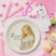 Add a touch of timeless elegance to your baby shower celebration with this beautifully designed paper plate featuring a soft watercolor illustration of an expecting mother in a flowing white dress. With delicate details and warm neutral tones, this plate is perfect for a refined and heartfelt gathering. The customizable name and date make it a memorable keepsake for guests and a beautiful addition to your baby shower decor. Ideal for brunches, dessert tables, or outdoor celebrations, this plate pairs perfectly with matching napkins and other soft pastel decorations.