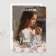 Soft watercolor floral boho accents add a touch of natural beauty, blending modern elegance with rustic charm. On the reverse side, you'll find space for another custom photo and a personalised thank you message, making this card a cherished keepsake for family and friends.