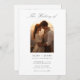 Invite the warmth of a sunset and the charm of the outdoors to your special day with our "Boho Elegant Photo Wedding Invitation." This invitation encapsulates the essence of a rustic country wedding with its minimalist chic design and a captivating photo backdrop that speaks volumes of a timeless romance. The soft beige tones blend beautifully with elegant, handwritten calligraphy, creating an invitation that is both stylish and inviting. Perfect for couples planning a simple destination wedding or an intimate outdoor ceremony, this card promises to set the tone for a day filled with whimsy and everlasting love.