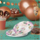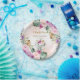 Adorable jungle-themed paper plate featuring a sweet baby elephant and elegant watercolor tropical greenery and flowers in blush and violet. Matching items available in our store!