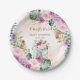Boho Elephant Blush Purple Floral Jungle Baby Girl Paper Plate