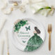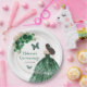 Boho Emerald Green Roses Princess Quinceañera Paper Plate