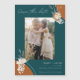 Boho-inspired save the date magnetic cards for the free-spirited couple. Emerald green with rust and pampas grass design is customised with your photo, names, wedding date and location.