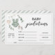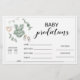 Watercolor green boho eucalyptus, baby girl clothes and toys baby shower games, baby predictions stationery.
