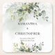 Boho eucalyptus greenery foliage wreath gold square paper coaster