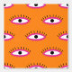 Transform your walls with this BOHO Evil Eye Pattern Retro Funky Wallpaper in a bold burnt orange hue. Featuring a playful twist on the traditional evil eye symbol, this design brings protection, positive energy, and eclectic bohemian style to any room.