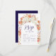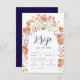 Boho Fall Floral Arch Navy Blue & White Wedding RSVP Card