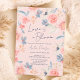 A pretty fall, modern, chic and elegant bridal shower invitation with a pretty dusty blue, light peach, pink and orange floral touch. All the text, names and background colours are customisable on pastel blush pink background. A simple and minimalist invitation featuring pretty garden autumn flowers .